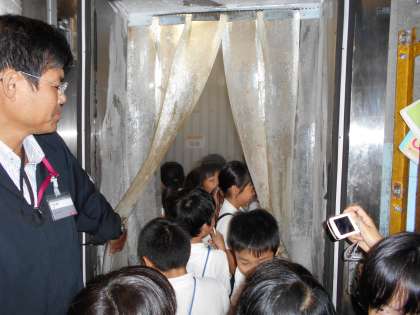 裏側では、冷凍庫の中も見せていただきマイナス20度を体験した子どもたちから「寒い〜寒い〜」と、声が上がりました。