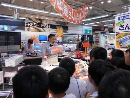 魚コーナーでは、魚を捌くところも見せていただき、子どもたちは大興奮でした。