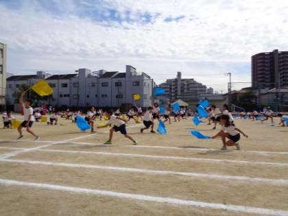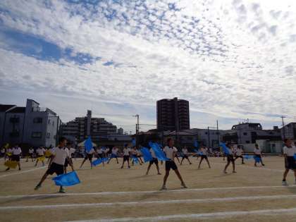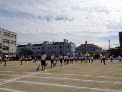 青と黄、二色の旗が一斉になびくフラッグ演技「The Greatest Show〜輝け!喜連東5〜」では、息の合った演技が見られました。