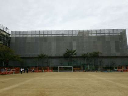 東校舎に幕が張られました。