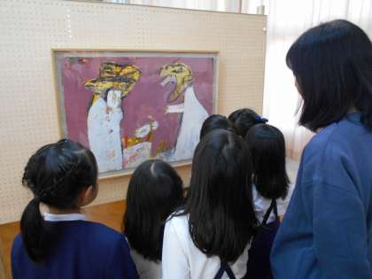 鑑賞に、「正解」はありません。自分たちが感じたこと、よく見て発見したことを発表し、友だちの意見にも、「へぇー!そんなふうにも見えるんだ!」と、耳を傾けていました。