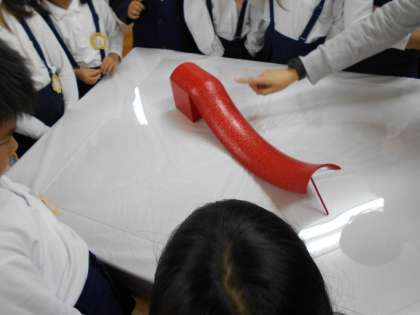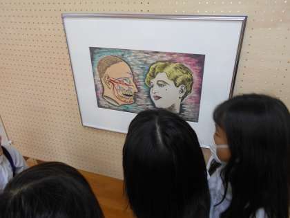 普段は、大阪府立江之子島文化芸術創造センター(enoko)に所蔵されている芸術作品を今回貸し出していただき、実際に目にしながら、作品を鑑賞するポイントをわかりやすく教えていただきました。
