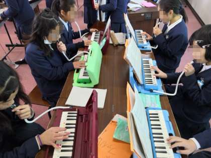 学習参観に向けて、1組、2組合同で合奏の練習です。