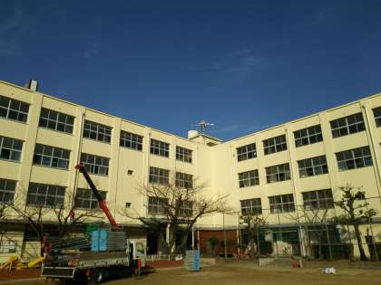 昨年10月より始まった外壁工事ですが、幕も足場も外され、校舎の壁も綺麗に塗り替えられました。