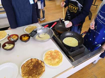 班のみんなで協力して、楽しんで作っていました。焼き加減に苦戦していましたが、味は最高だったようで子ども達は満足気な表情でした。