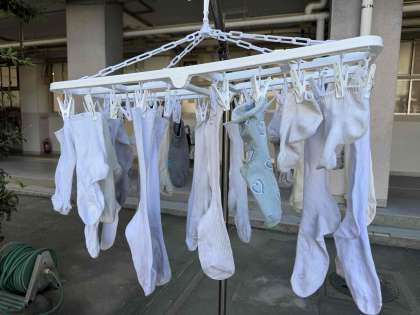 真っ白の靴下の土汚れを洗剤だけで完璧に落とすのはなかなか難しかったようですが、みんな一生懸命に真っ白にしようと頑張っていました。