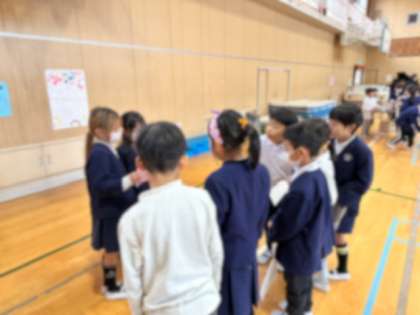 2年生は1年生に優しく教えていました。