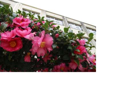 先日亀池の水漏れが発覚し、さっそく地域の方が修理に来てくださり事なきを得ました。花壇の山茶花は見頃を迎え、人目につかない校舎の北側では、鳥たちが密かに柿の実をついばんでいるようです。