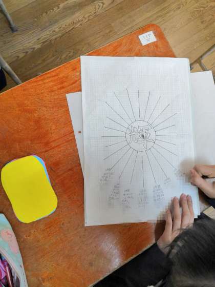 文字のイメージを膨らませ、そのイメージに合うように色を変えたり、自分なりにアレンジしたりします。見る人も思わず頷いてしまう作品ができています。