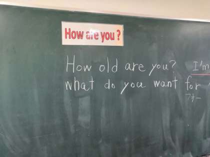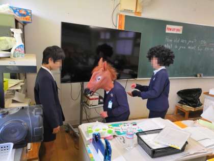 サンタクロース役と子ども役に分かれて、英語で劇を行いました。アフロのサンタさんは少し怪しかったですが、子どもたちは楽しく英語に慣れ親しんでいました。