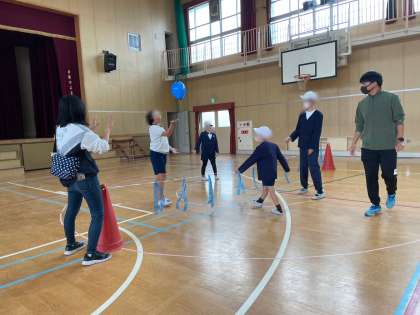 児童のみんなは個人の目標を決めて風船バレーに励みました! -