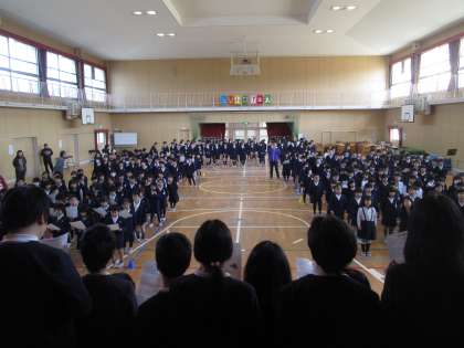 いよいよフィナーレは、全校合唱の「ひまわりの約束」。子どもたちの歌声が講堂中に響き渡りました。