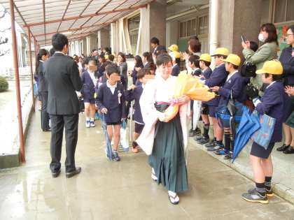 降雨の中でしたが、たくさんの保護者や在校生、教職員に見守られながら、卒業生たちは本校を巣立っていきました。