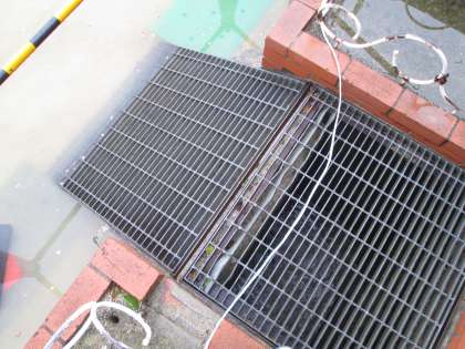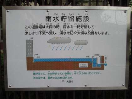意外と知られていないと思いますが、本校の運動場は「雨水貯留施設」になっています。大雨が降った際に、雨水を一時貯留して少しずつ下流へ流し、浸水を防ぐ大切な役目をしています。