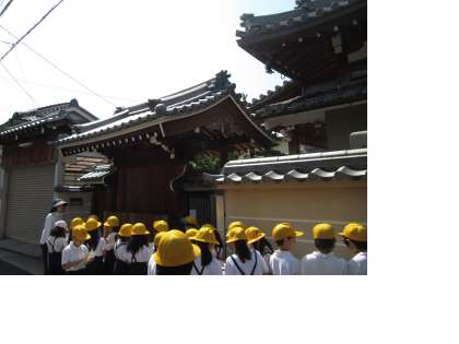 路地の先にはお寺が、普段お参りする神社の境内には百度石が…。