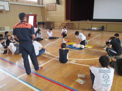 6月2日(月)本校講堂において平野消防署員をお招きし、普通救命講習会を開催しました。恒例の行事ですが、毎回参加してもやはり緊張します。