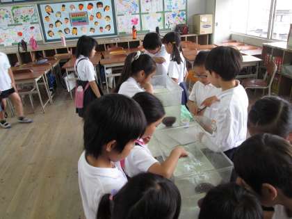 一時は騒然となった理科室でしたが、やがて解剖に熱中する子どもたちへと切り替わっていきました。中にはどうしてもアジの内臓をさわれない子もいましたが、予想以上に盛り上がりを見せた時間となりました。 -