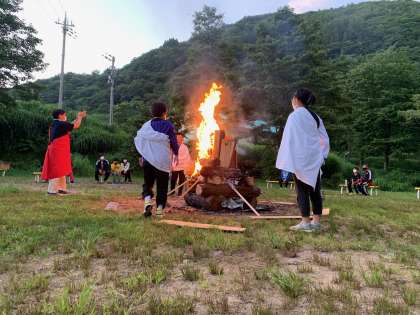 日も沈み、火がさらに綺麗に激しく燃えています。