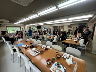 今朝も、食事係の人たちが一足先に集まり、準備をしています。