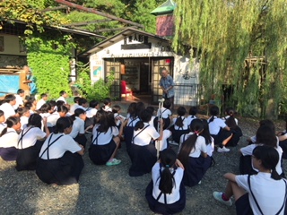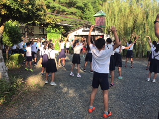 めだかの学校でラジオ体操をした後、校長先生のお話を聞きました。
