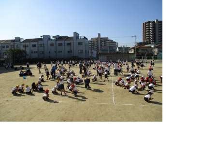 秋晴れの空の下、運動場の小石拾いをしました。子どもたちだけでなく、教職員も今後は運動場の整地作業を進めていきます。いよいよ運動会モード突入といった感じです。 -