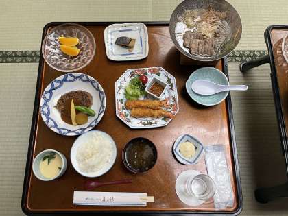 ホテルで食べる最後のご飯。今日は鳥羽水族館と陶芸の絵付け体験、活動のためにしっかり食べます。