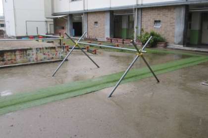 朝からあいにくの雨模様。運動場・中庭で遊べません。