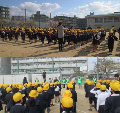 次に、校長先生から、「いかのおすし(内容は子どもたちに聞いてください!)」についての話があり、その後、児童の安全確保のために登下校の際に地域の交差点等に立っていただいている「見守りたい」の皆さんとの対面式を行いました。
