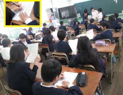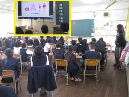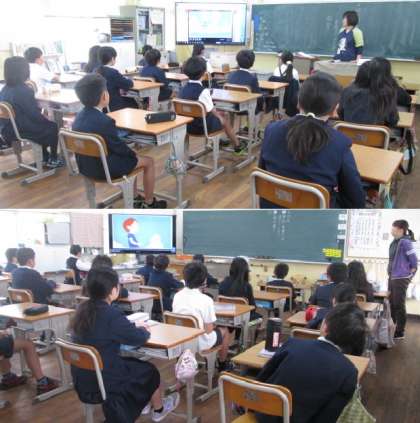 次に、4〜6年生の様子です。内容に合わせて立ったり座ったり、物語に合わせて発音したり、文字で表現したり…。