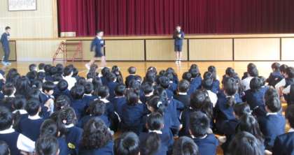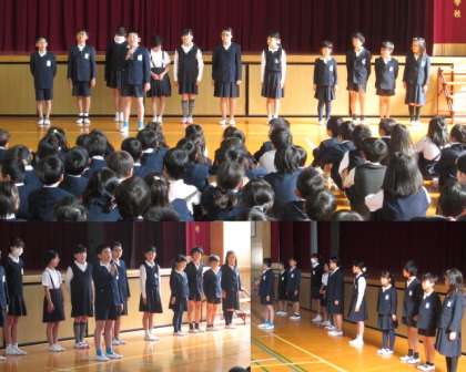 本日、今年度初めての児童集会として、前期代表委員会のあいさつがありました。