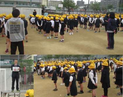 児童朝会では、元気いっぱいの校歌斉唱の後、校長先生のお話です。内容は、「瓜破東小CM作戦」について。「新しい学年になって2週間がたちました。自分のことをCheckして、頑張った方がよいところが見つかったらChance。しっかりとMark(目標)をもって生活していこう!」