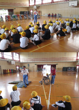 これは、車いすを利用する方々への介助の仕方や実際に車いすに乗って操作方法を学ぶ体験を通して、人に対する優しさや思いやりの気持ちを育てることを目標としています。