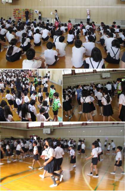 今日の児童集会は「○×ゲーム」。瓜破東小のことについての問題が出されました。