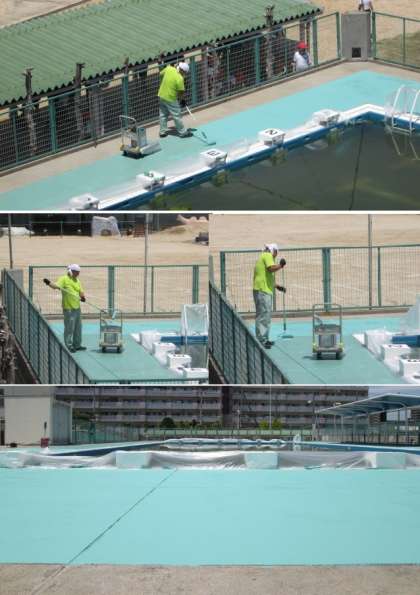 数日前から、管理作業員さんがプールサイドを塗装してくれています。