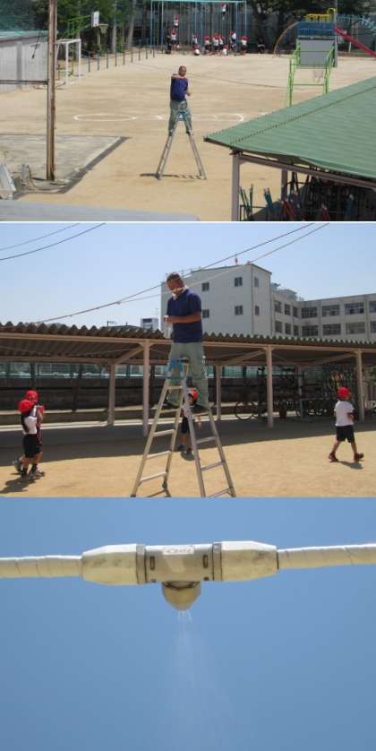 予報では、今日の予想最高気温は30度。この夏も猛暑が心配です。運動場に出るところにつけているミストも点検していただき、使い始めました。