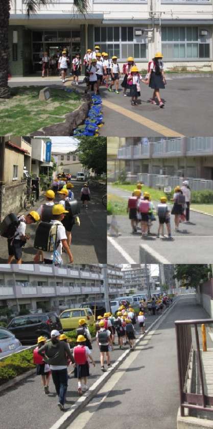 昨日、台風や大雨で警報が発令された場合の避難方法を確認するため、避難訓練を行いました。