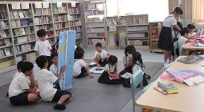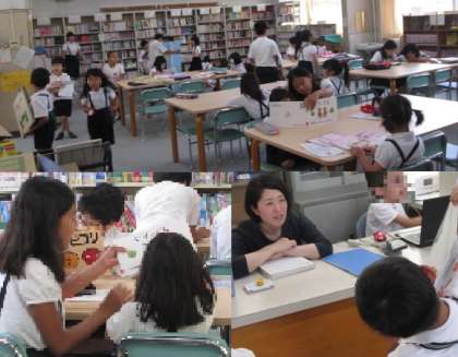 朝から雨が降っています。中庭のアジサイが、きれいに咲いています。今は読書週間なので、20分休憩に図書館を開放しているのですが、運動場が使えないということもあってか、50人以上も集まってきました。図書委員会の皆さんが1年生にせがまれて読み聞かせをしていたり、1年生が先生に読んであげていたり…。