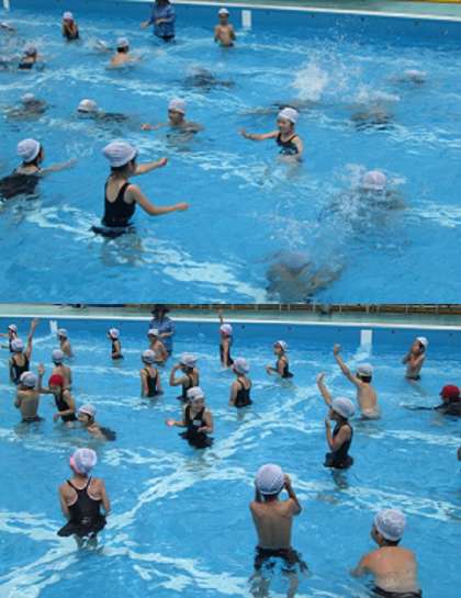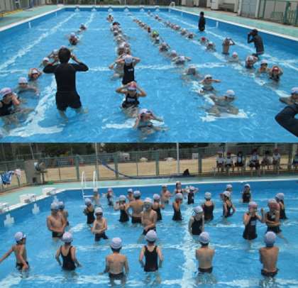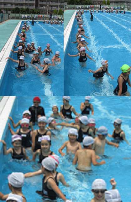 プールをぐるぐる回りました。4年生がリードしてくれるので、2年生はとても安心!!