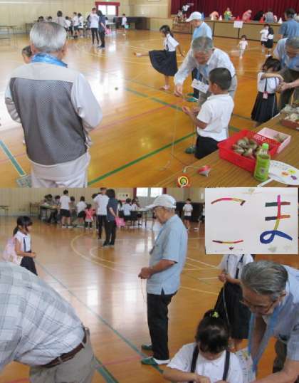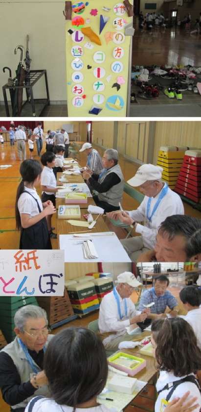 6−1ドキドキラケットボール運び、地域の方のお店「昔の遊び体験」〜紙とんぼ、こま