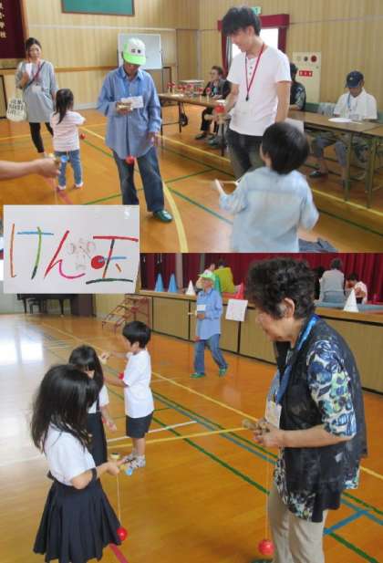 地域の方のお店「昔の遊び体験」〜けん玉、おはじき、おりがみ