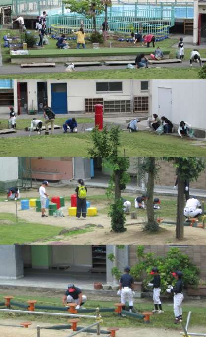 「講堂のいたるところまで!」「中庭のいたるところまで!」「いよいよ最後の仕上げ」