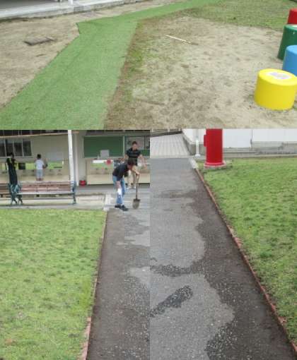 「遊具周りきれいです!」「道と草地とはっきりしました!」「樹木の周りもすっきり!」