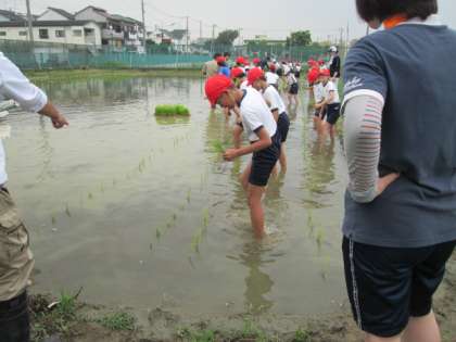 3日午後、5年生が社会科・総合の学習で「大阪市JA平野営農促進センター」に田植えの体験に行ってきました。
