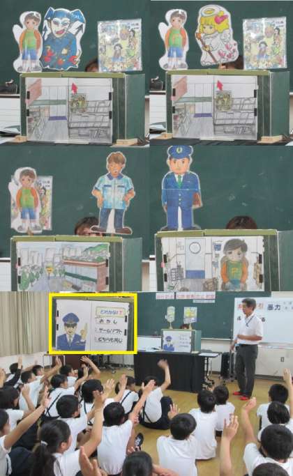 非違行為を行ったり犯罪に巻き込まれたりしないため、コンビニでの万引きという具体例をペープサートで見せてくださり、家族の気持ちを考えたり、困ったときの回避方法を考えたりしました。