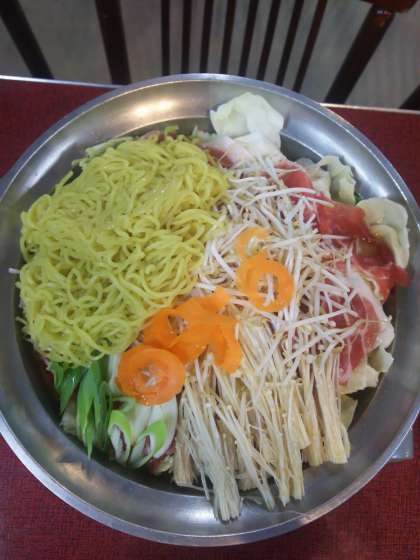 入浴が終わり、待ちに待った夕食です。メニューは、ぶたみそなべです。美味しそ〜う??