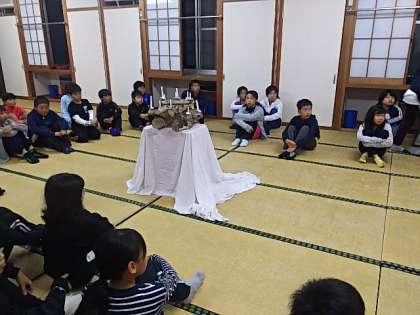 高原の風がきつく、ファイヤーの火の粉が舞って火傷をしてはいけないので、急遽、キャンドルファイヤーに変更しました。