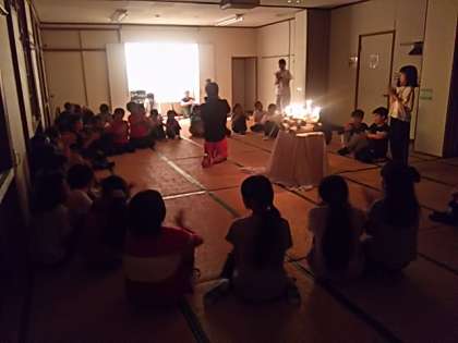 楽しかった時間は、あっという間に過ぎて、キャンドルファイヤーは終わりました。この後は、リーダー会議、反省会と続き、就寝となります。