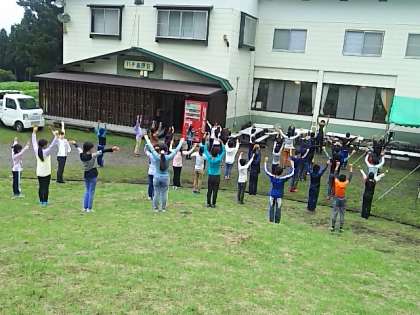 おはようございます。こちらは霧雨、風が強く吹いています。全員、元気です。濡れるほどではないので、外で朝のつどいを行いました。