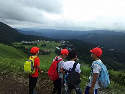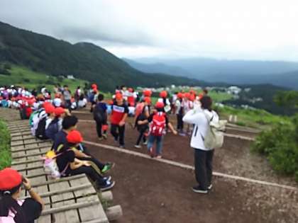 今日の天候を考えて、鉢伏山より少し低い高丸山を折り返し点としました。山頂では、いくつかの学校と一緒になりましたが、例年よりは空いてます。麓の景色をながめ、感慨に浸っていました。