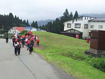 グループごとに記念撮影を済ませ下山開始、宿舎に戻ります。下りも足に負担がかかります。慎重に!